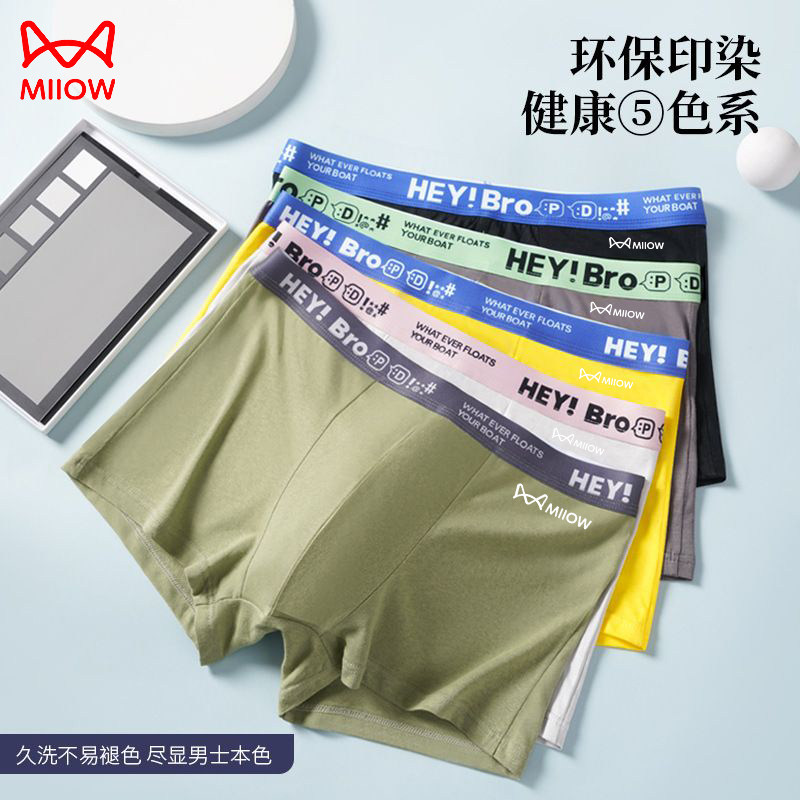 猫人名牌棉款内裤男士2025新款平角抗菌四角短裤男款式青少年裤衩