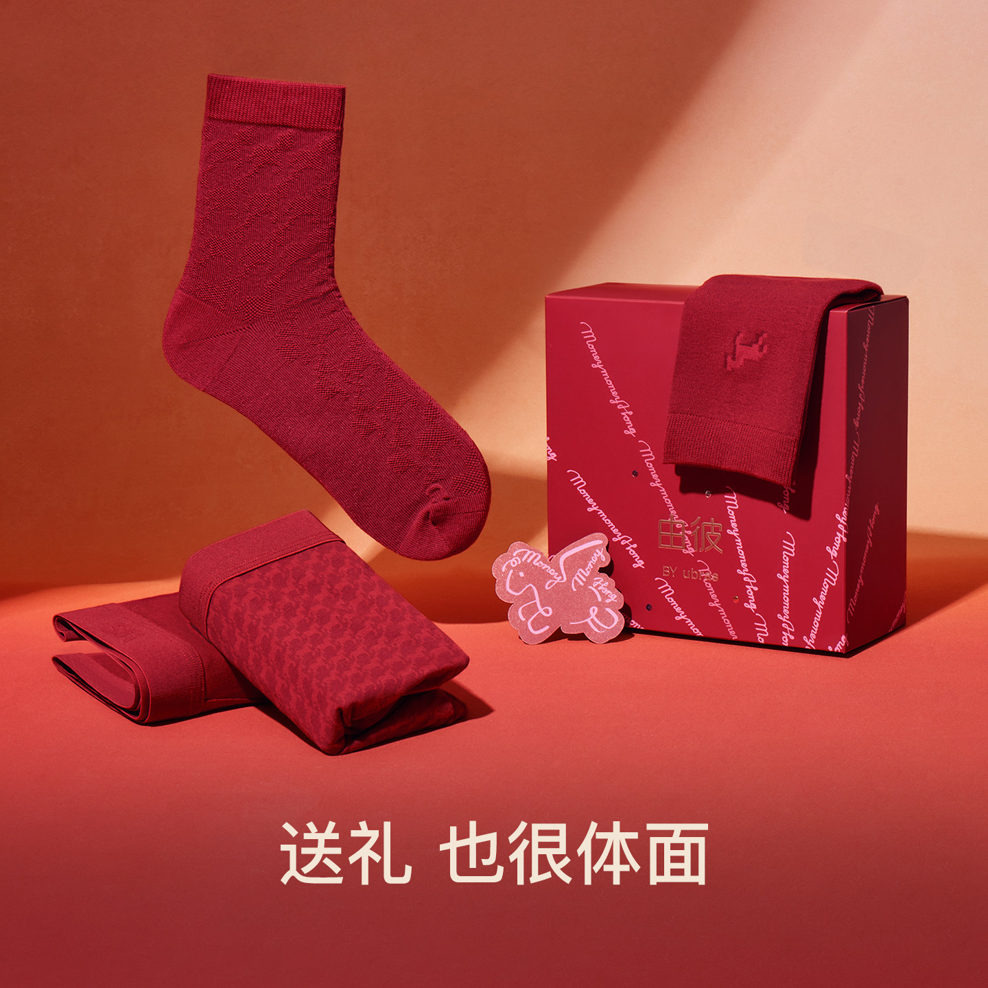 ubras本命年红色内裤马年莫代尔男士纯棉抗菌底裆内裤袜子礼盒