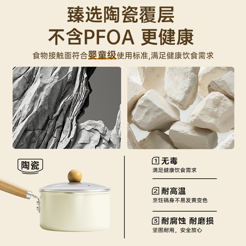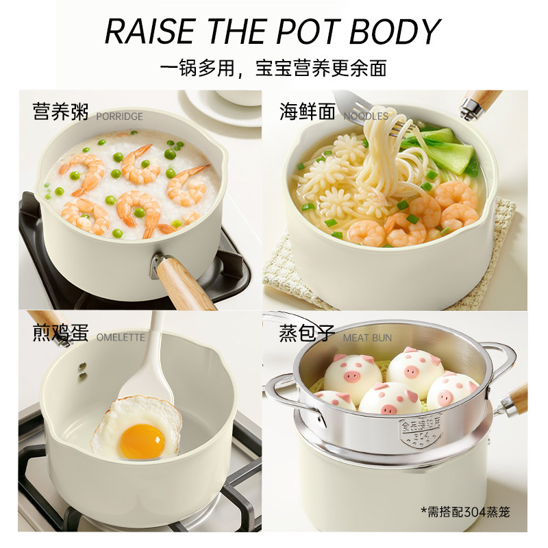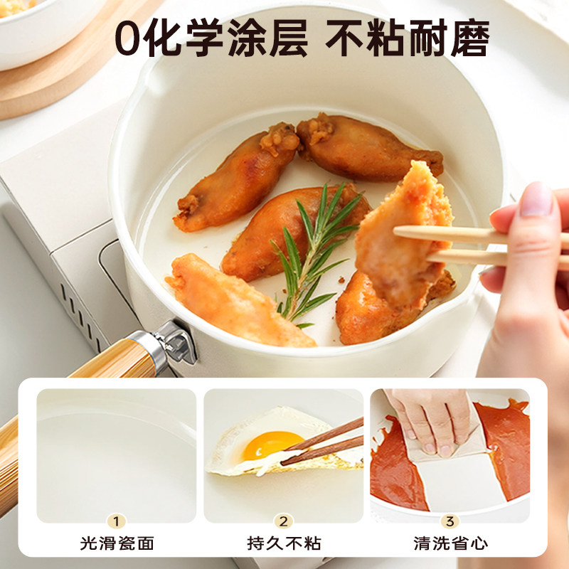 陶瓷小奶锅宝宝辅食锅婴儿小锅煎蒸煮一体不粘锅平底热汤锅泡面锅