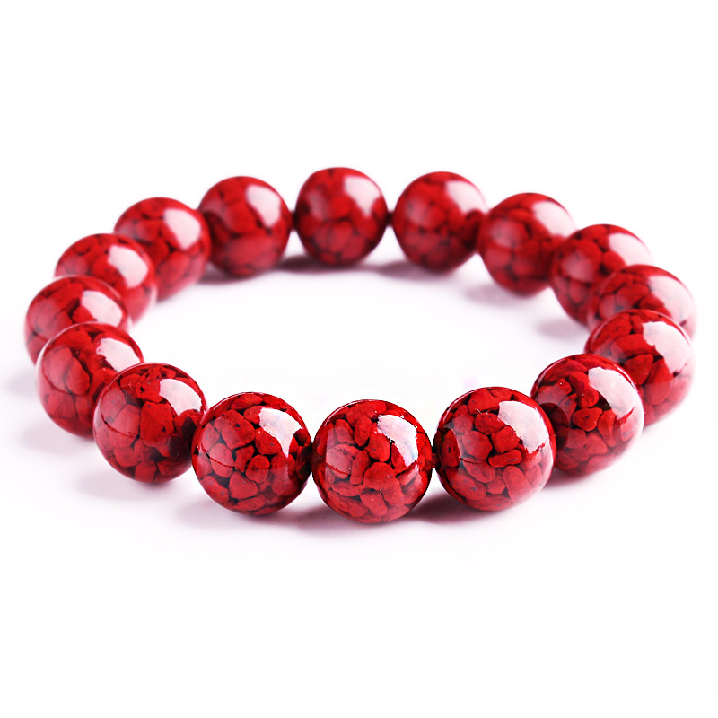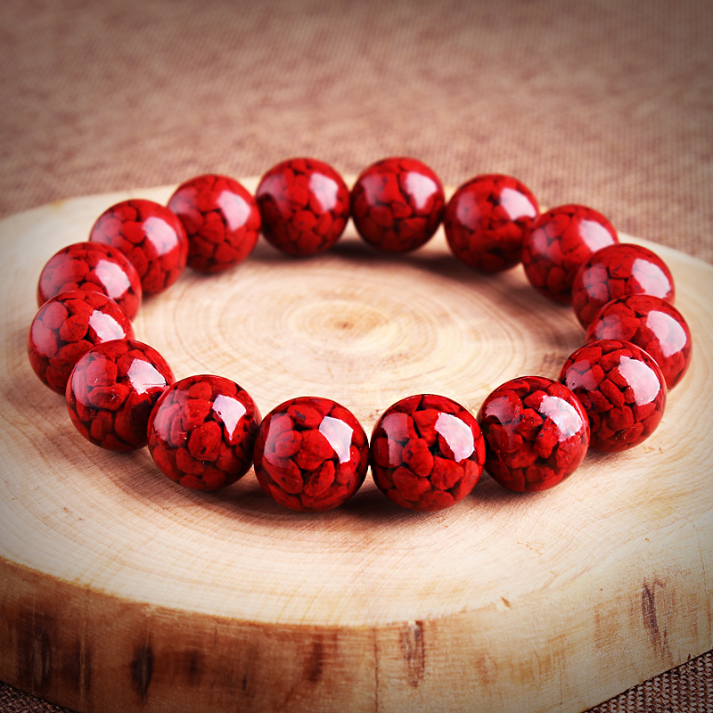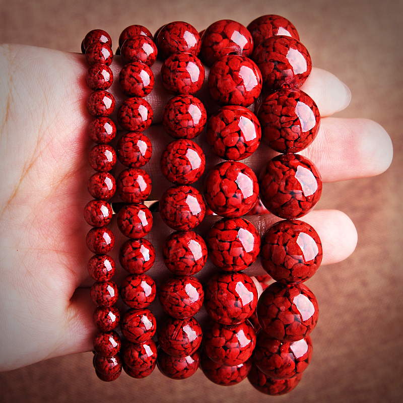 晶体砂朱砂圆珠砂手链男女款大颗粒单圈辰砂饰品手串原矿珠宝玉石