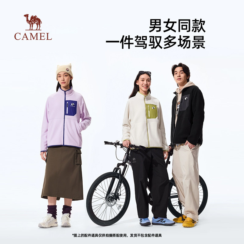 骆驼男装熊猫抓绒衣2025秋冬男女保暖防静电立领外套情侣上衣