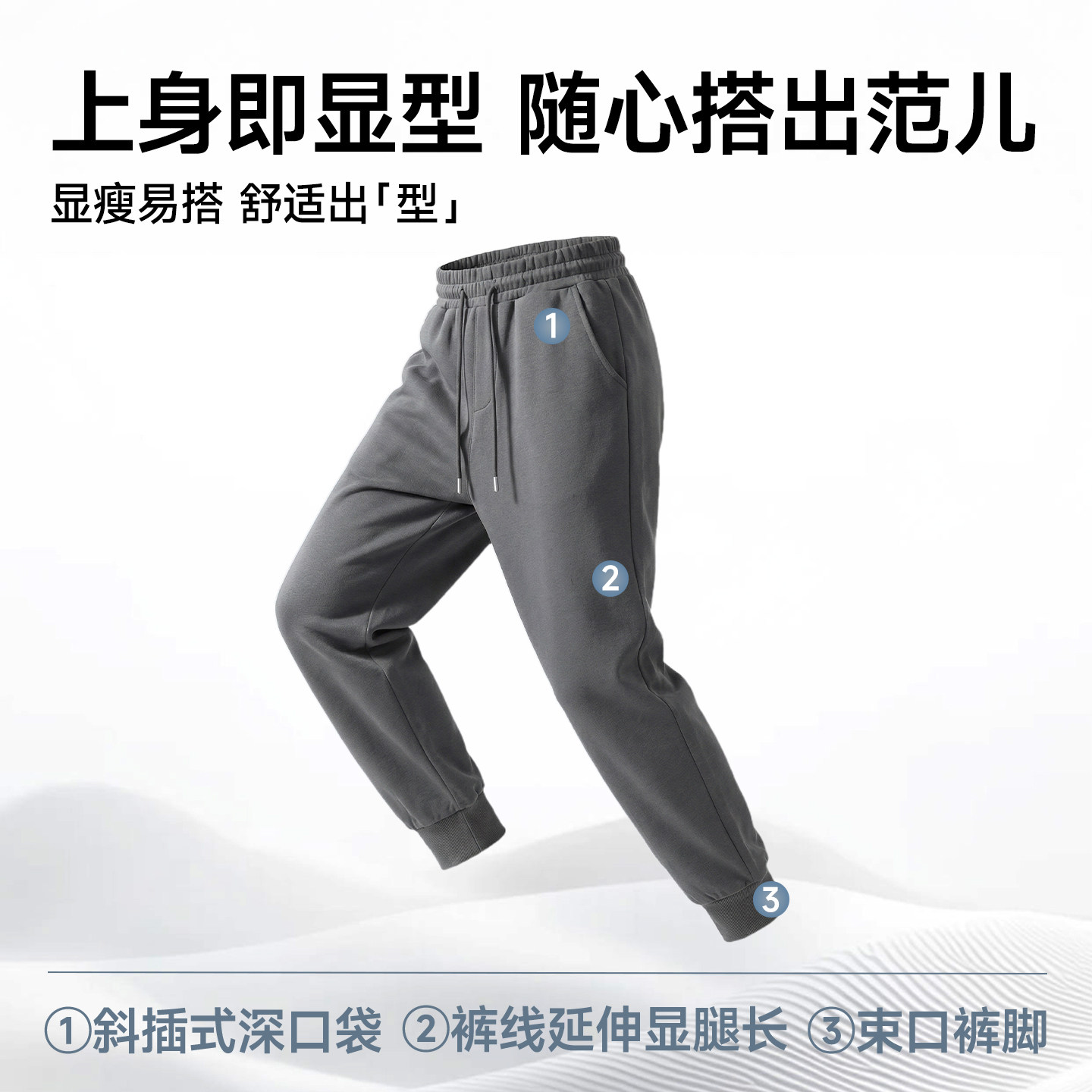 猫人卫裤男款春季重磅潮流青年束脚裤男式大码显瘦黑色运动裤男J
