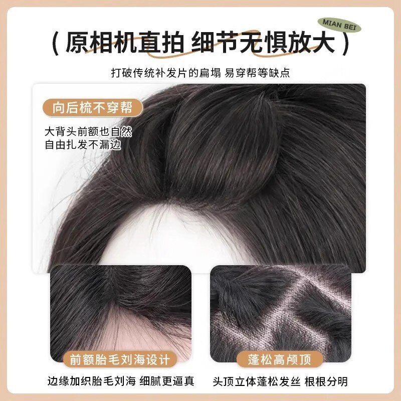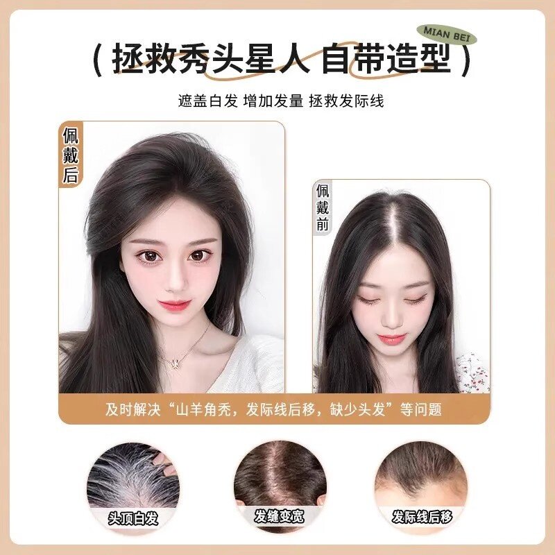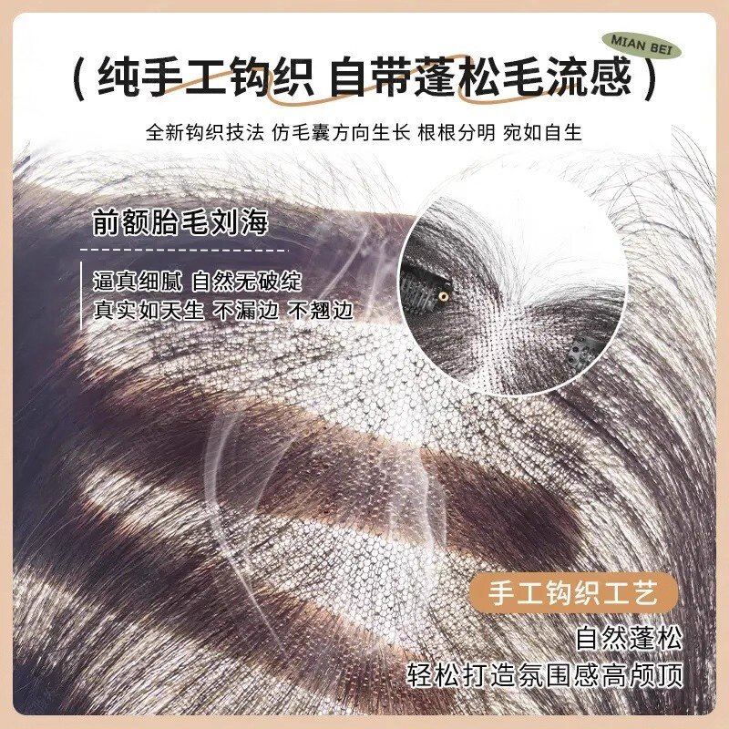 胎毛刘海假发女片头顶遮神器高颅顶蓬松真发无痕发际线贴八字前额