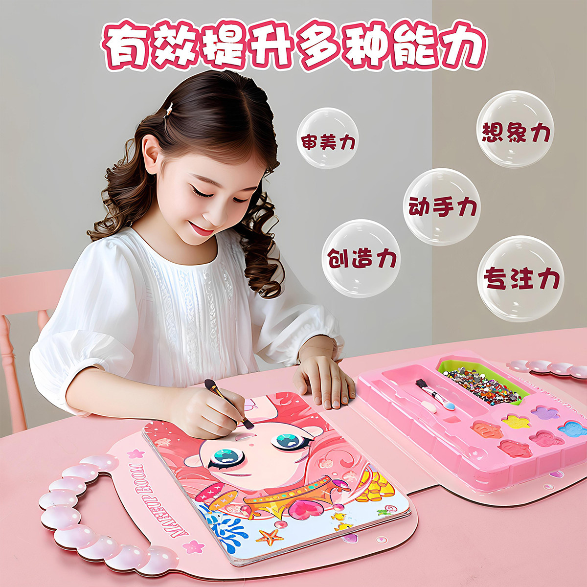 儿童化妆盒玩具公主化妆包贴纸女孩新年生日礼物安全无毒手工玩具