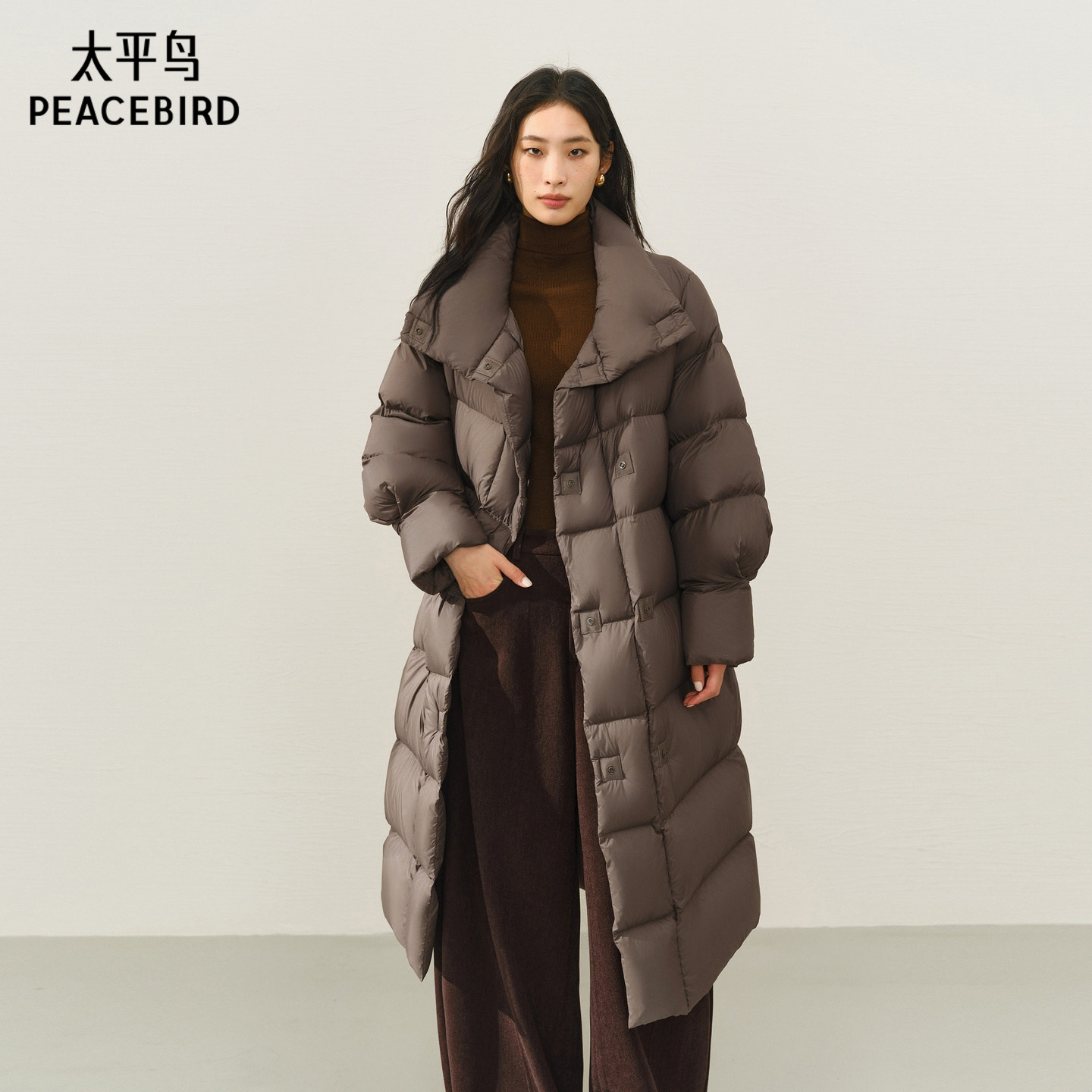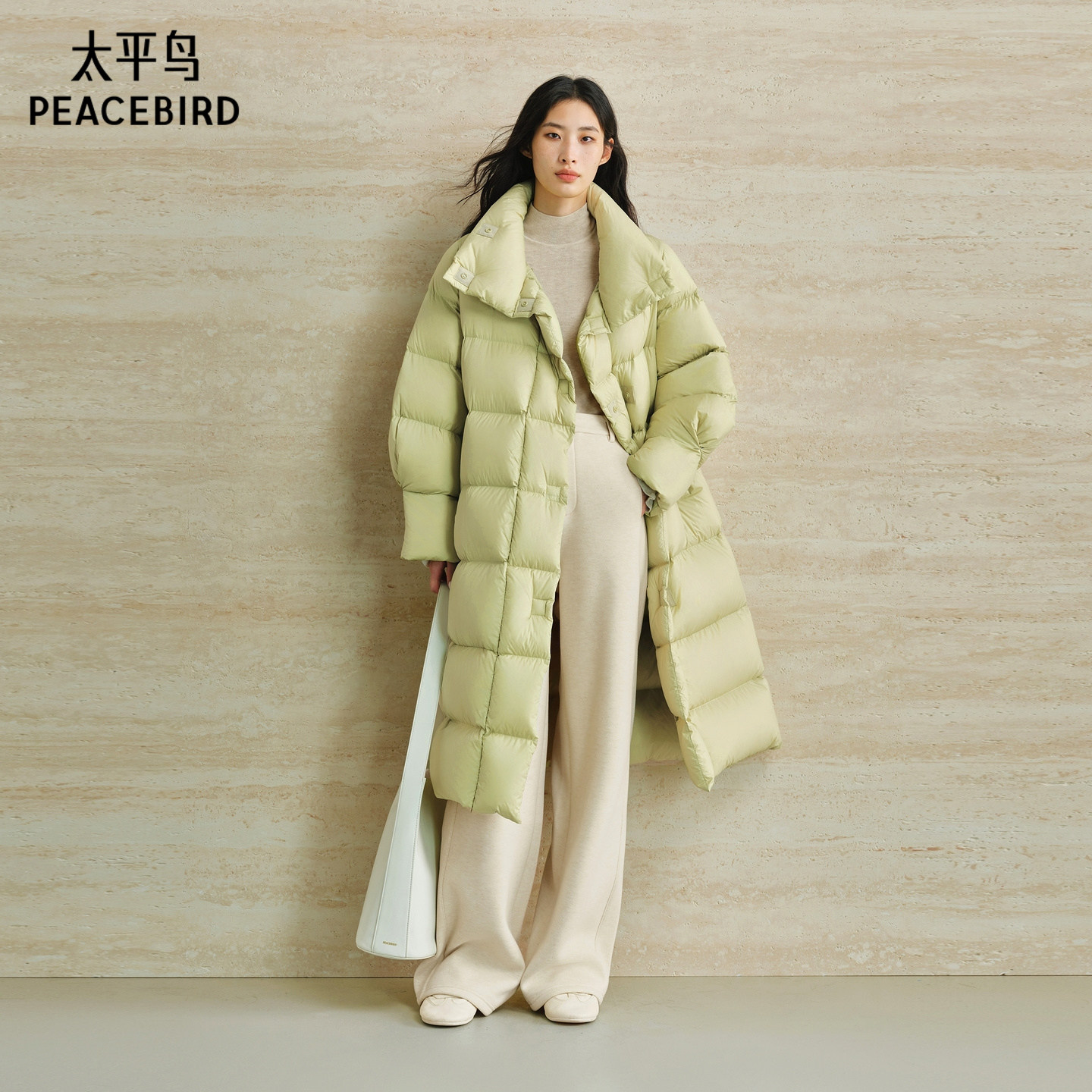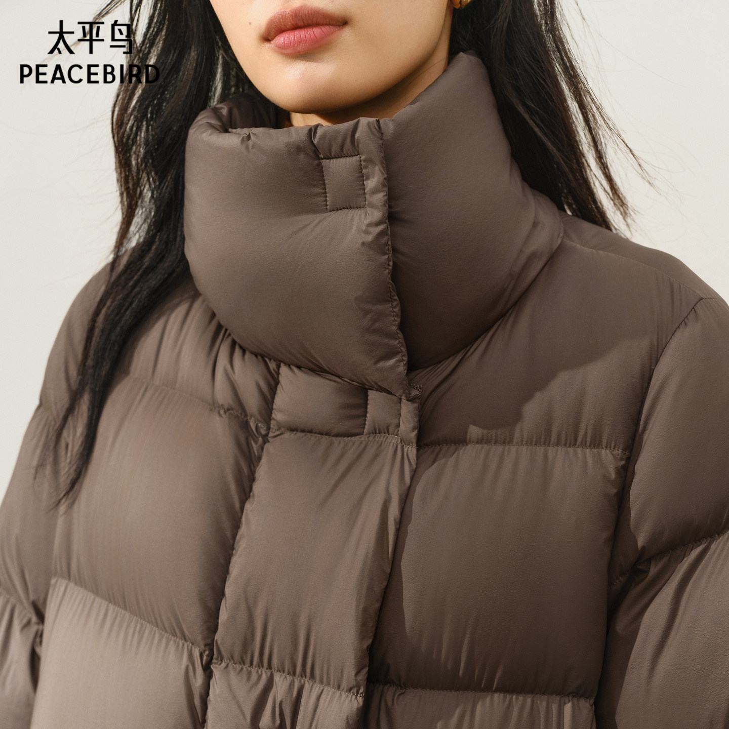 【零压】太平鸟中长款绗缝泡芙羽绒服女冬款宽松轻暖立领面包服