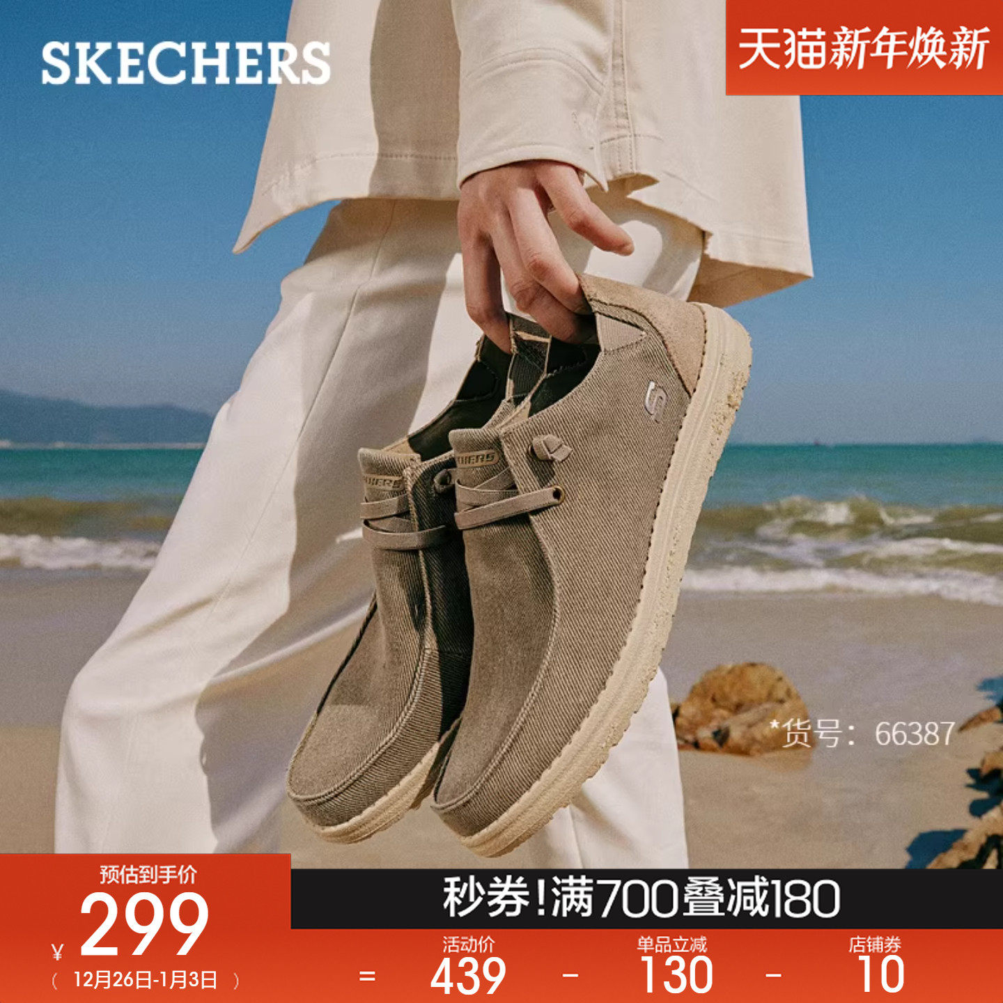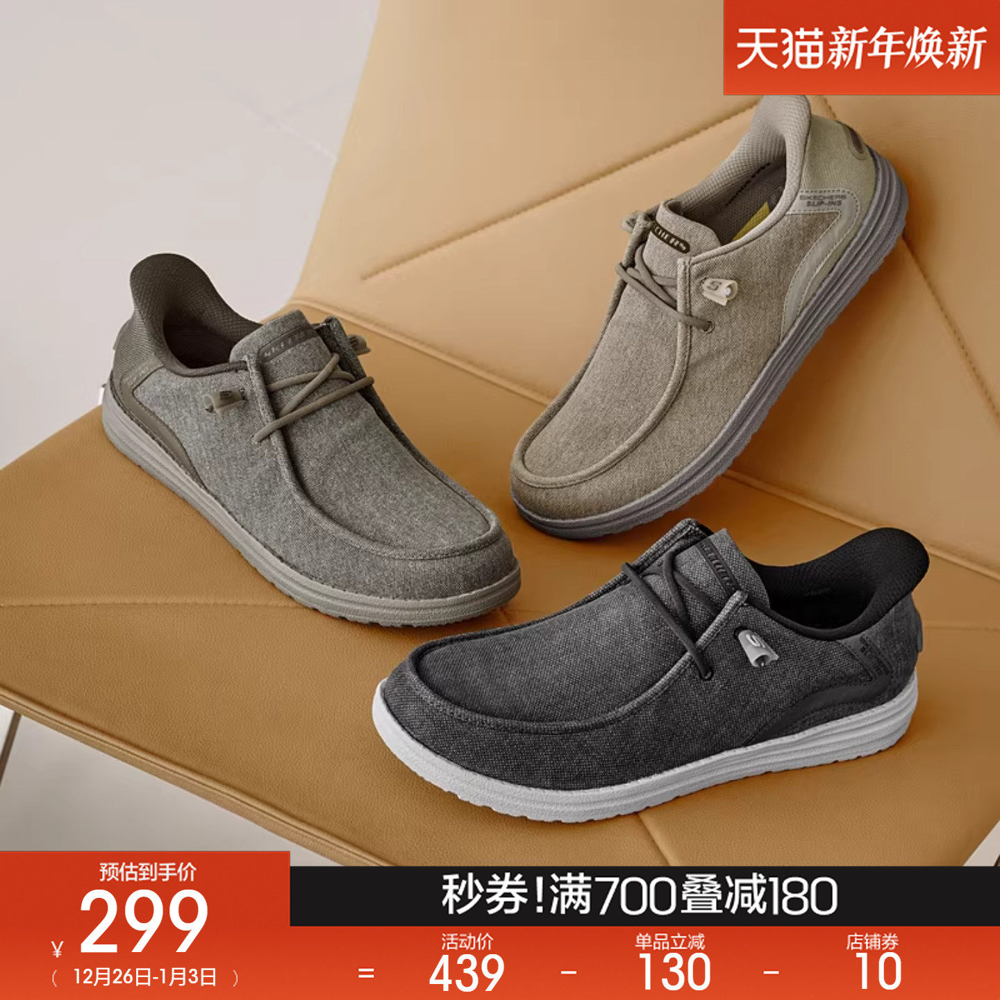 Skechers斯凯奇男鞋秋冬一脚蹬乐福鞋帆布鞋厚底低帮休闲商务鞋