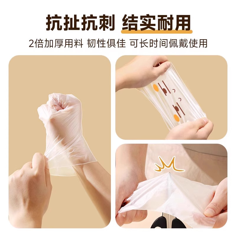 一次性手套加厚款透明薄膜手套PE食品级烘焙餐饮外卖家务手膜批发