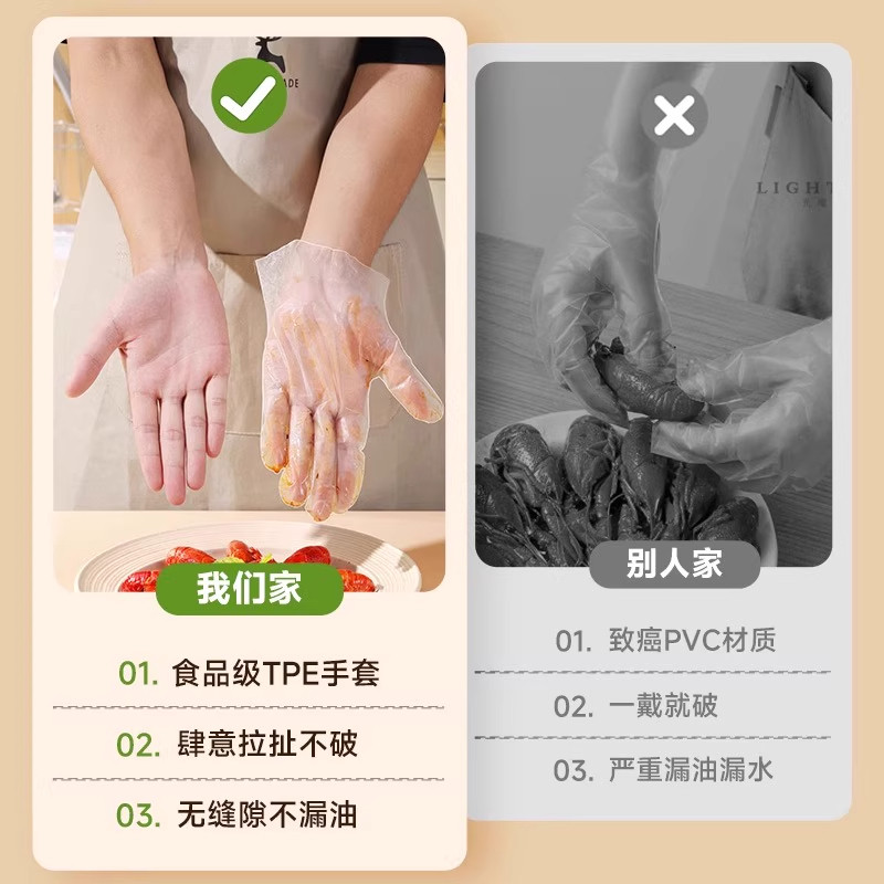 一次性手套pe食品级专用加厚耐用家用抽取式透明吃小龙虾餐饮盒装