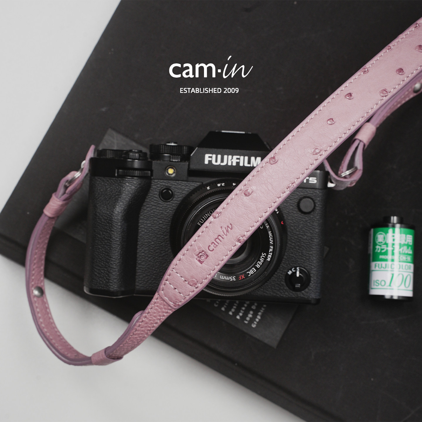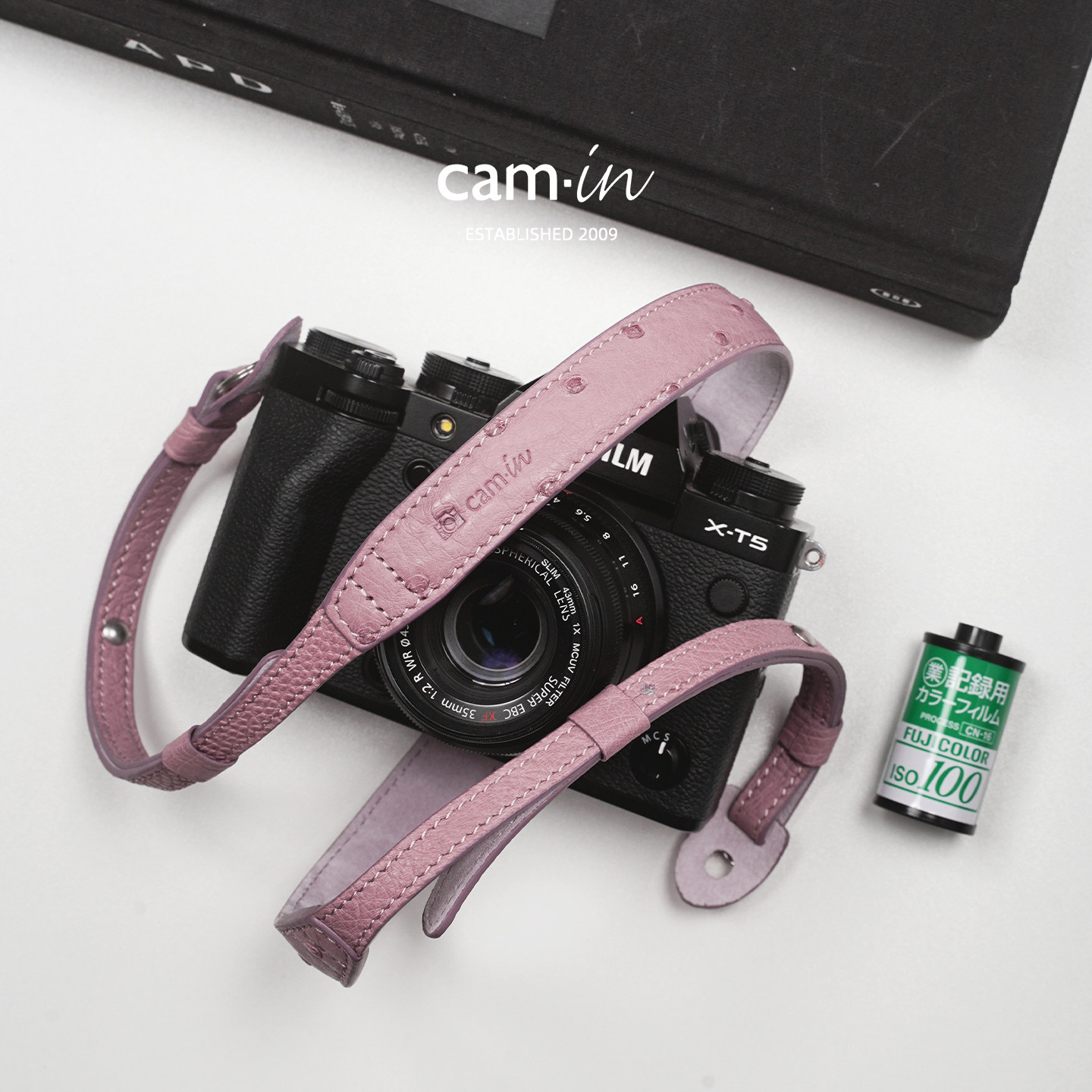 cam-in鸵鸟皮真皮手工相机背带通用牛皮可调节相机肩带斜挎带挂脖