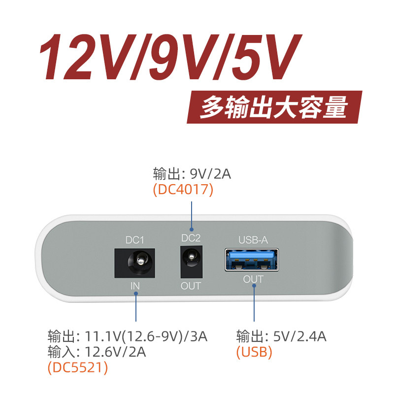 亿森能12V移动电源9V5V锂电池组12000毫安带3C认证小体积大容量18650电芯多功能适用于制氧机LED灯路由器相机