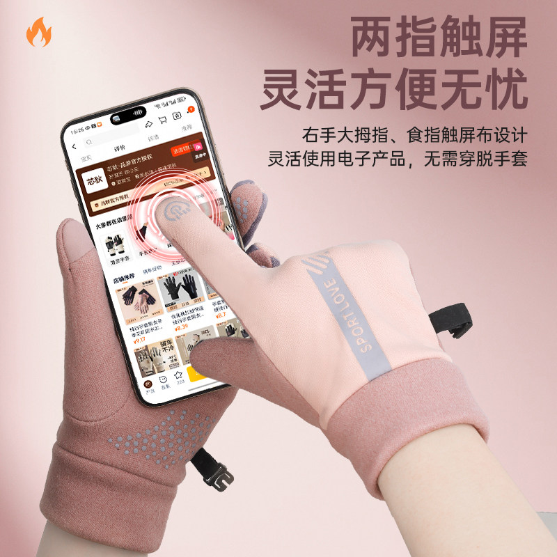 骆驼手套冬季男士户外跑步运动防寒薄绒保暖女可触屏防滑骑行手套