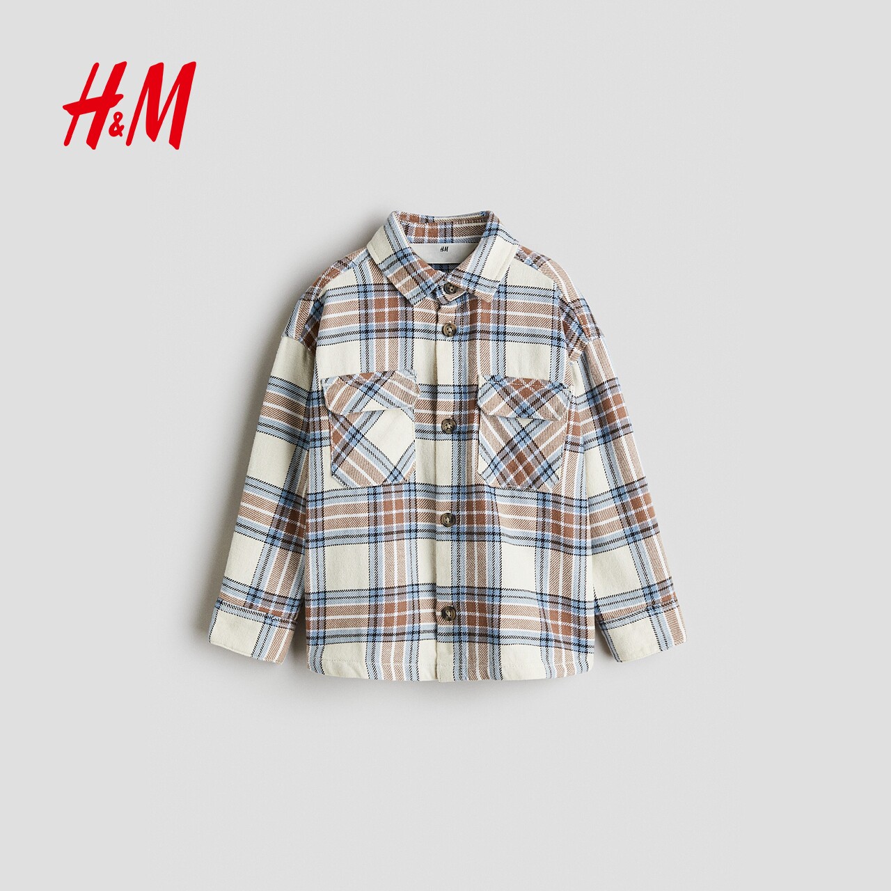 HM童装儿童男童衬衫春季翻折领翻盖胸袋大廓形衬衫1197507