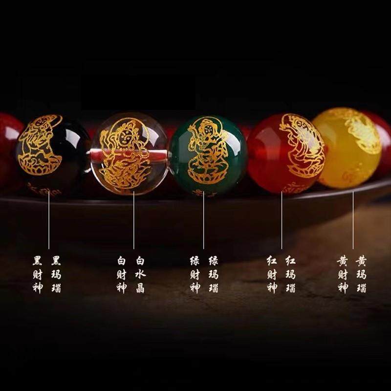 晶饰缘招财朱砂手串男款本命年五路财神转运珠水晶玛瑙手链女貔貅