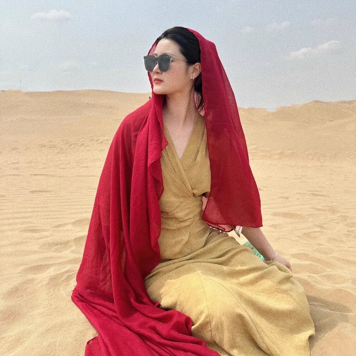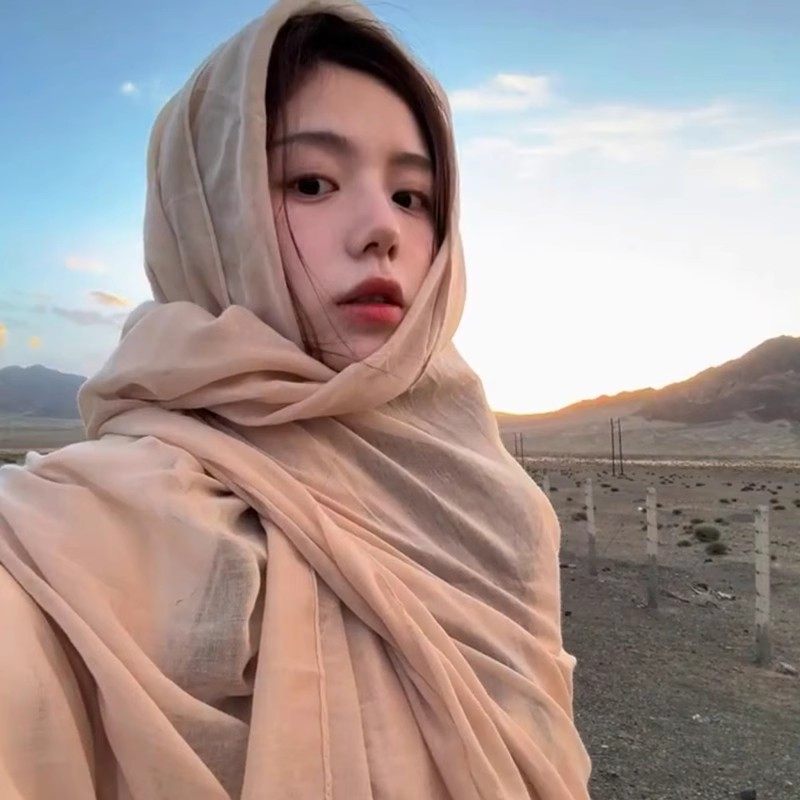沙漠春秋旅游埃及敦煌头巾纯色大西北披肩围巾纱巾棉麻丝巾米色