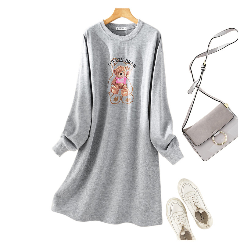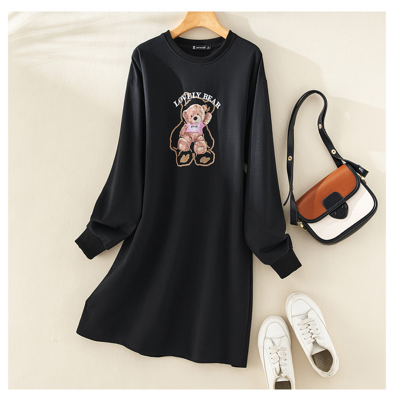 YD真维斯女装春秋季 潮流时尚可爱印花图案圆领通勤设计感连衣裙