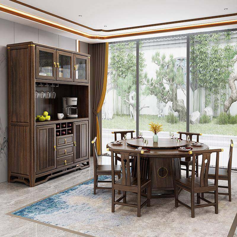 乌金木新中式实木餐边柜靠墙一体置物柜客厅酒柜储物柜家用餐厅柜