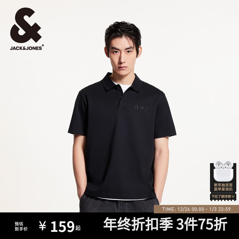 巴斯奎特联名 杰克琼斯男装POLO衫秋季新款休闲宽松短袖翻领T恤式