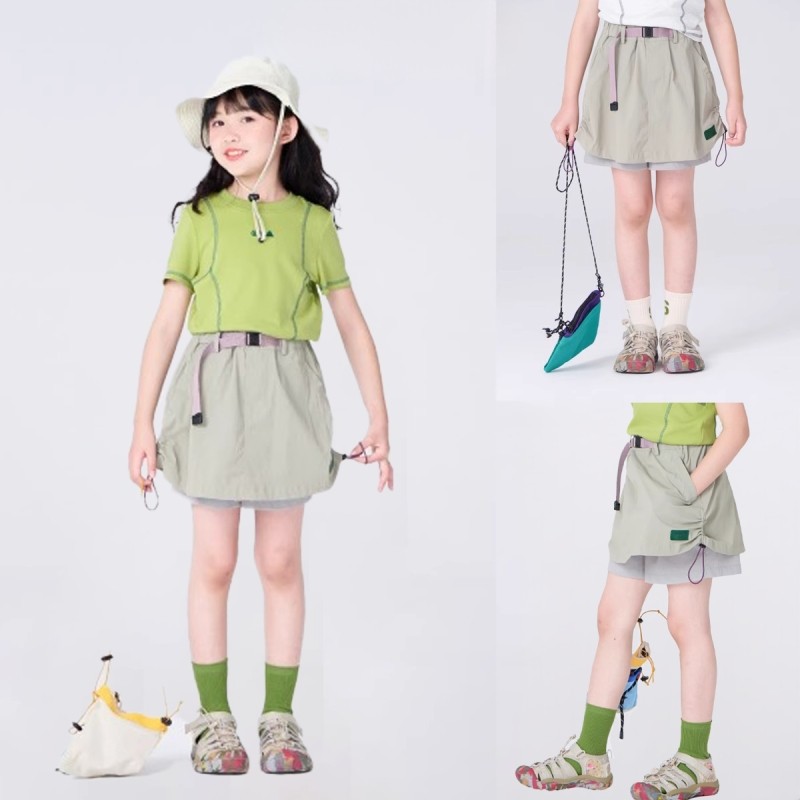 女孩半身裙夏季2025亲子假两件户外百搭工装双层短裙裤裙防走光