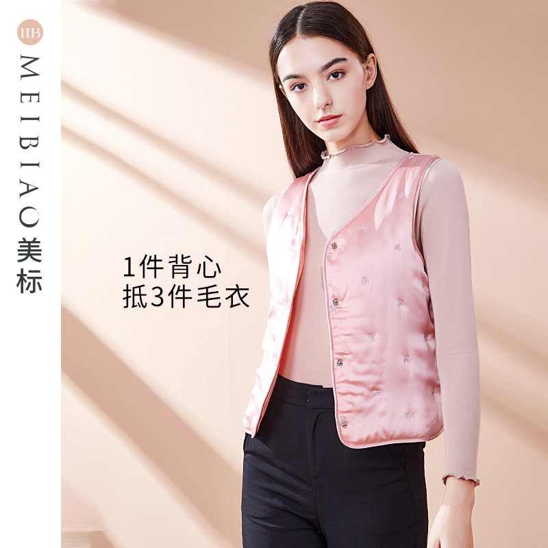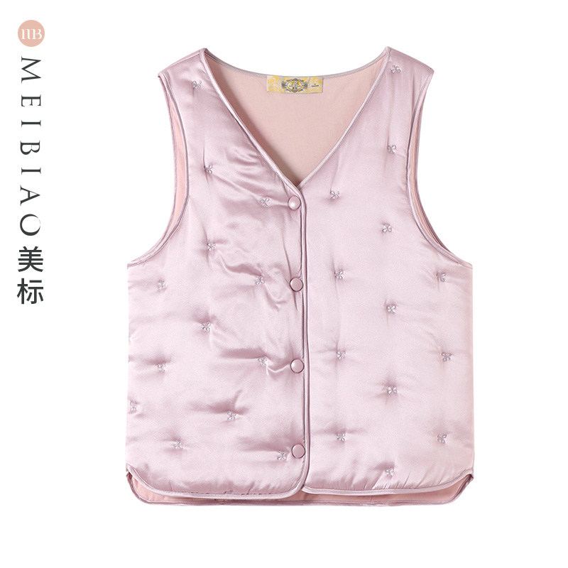 美标秋冬款真丝夹棉背心桑蚕丝马甲女重磅丝绸轻薄居家服保暖上衣