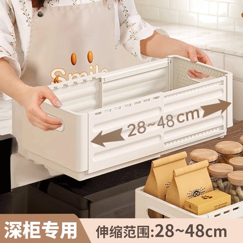 橱柜收纳盒抽屉式可伸缩桌面杂物零食厨房整理盒子深柜直角储物箱
