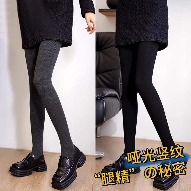 灰色连裤袜女秋冬季加绒加厚保暖显瘦竖条纹雷格系打底光腿神器