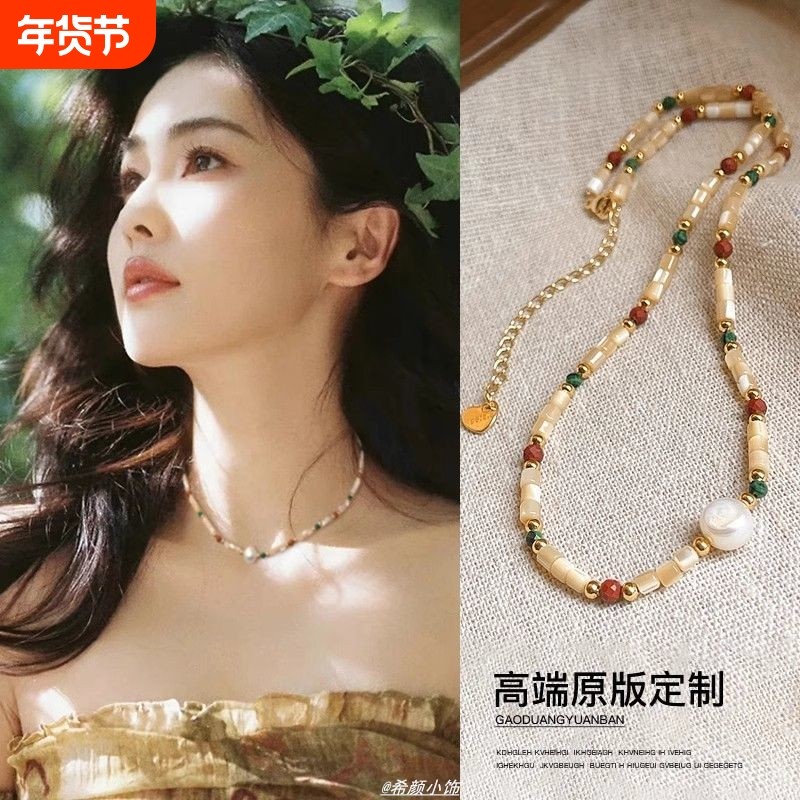 波西米亚串珠小众项链女2025新款吊坠高级感轻奢锁骨链颈链配饰秋