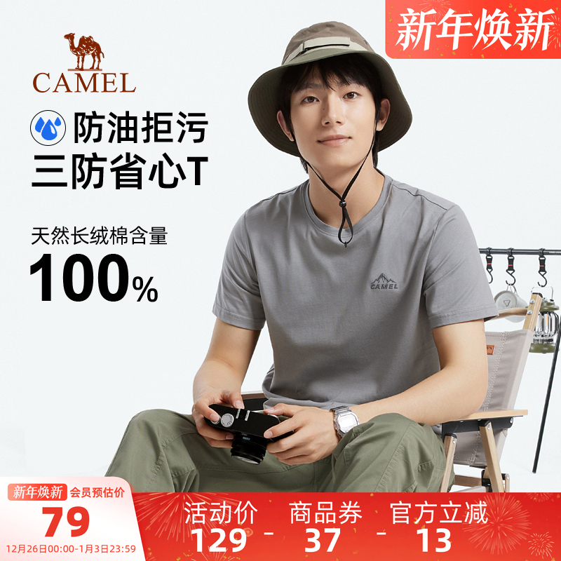 骆驼男装短袖三防T恤男户外年夏凉感纯色潮流休闲圆领男士短T上衣