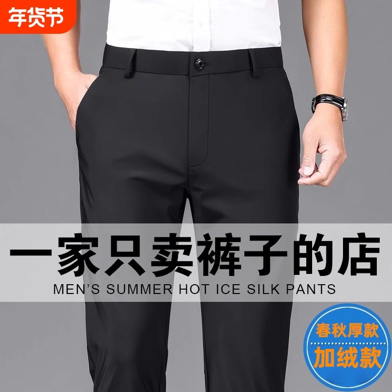 春秋男士休闲裤宽松直筒长裤冬季加绒保暖男裤高弹力商务西裤薄款
