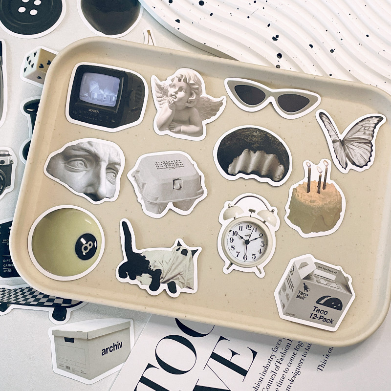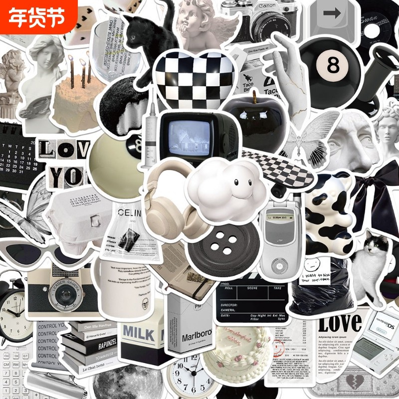 61张行李箱笔记本电脑贴纸ins风黑白简约手机壳ipad水杯防水吉他贴画