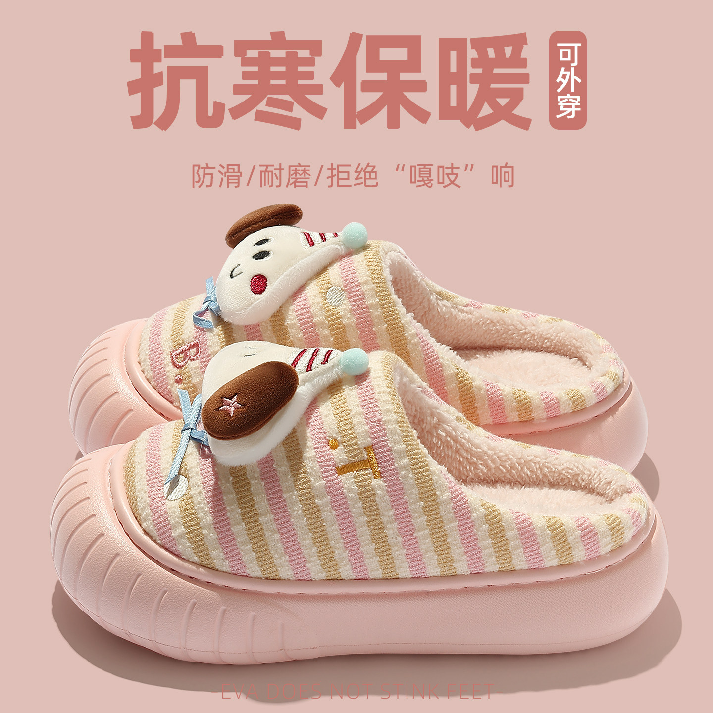 kt猫棉拖鞋女款2025新款冬季包跟室内家居保暖厚底毛毛加绒棉鞋女