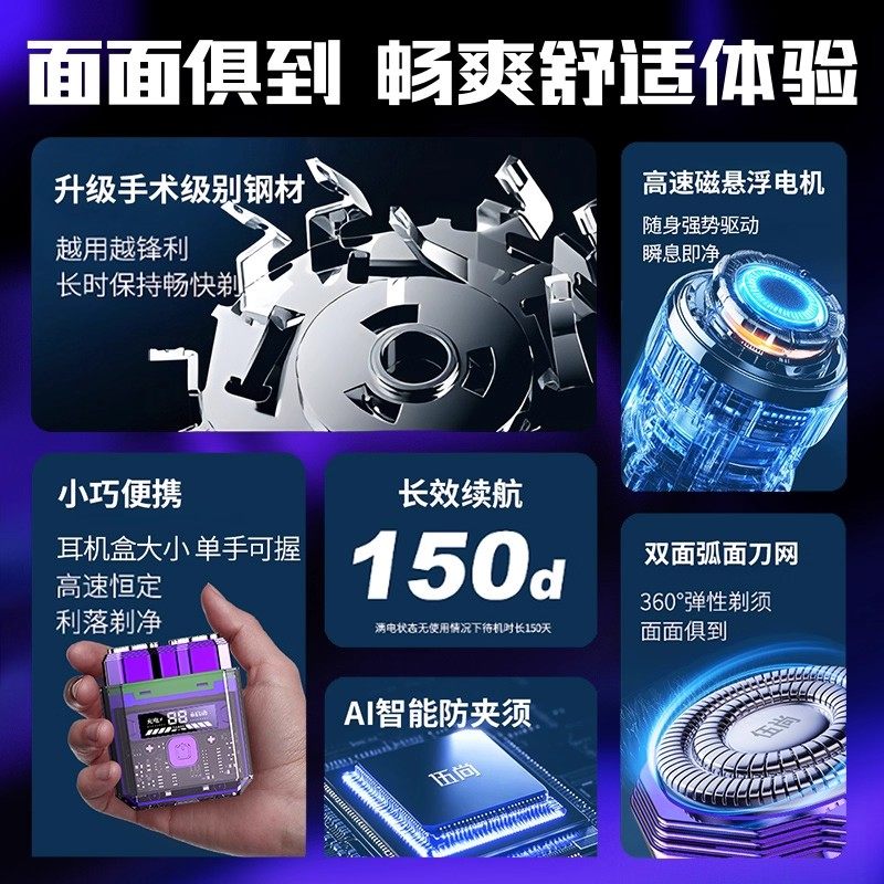 【免费试用】剃须刀男士电动迷你便携刮胡刀官方正品2025年新款