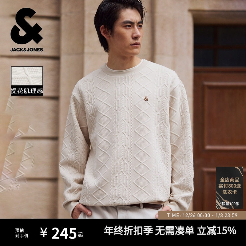 【肌理面料】杰克琼斯男装秋季新款刺绣情侣长袖T恤卫衣外套男士