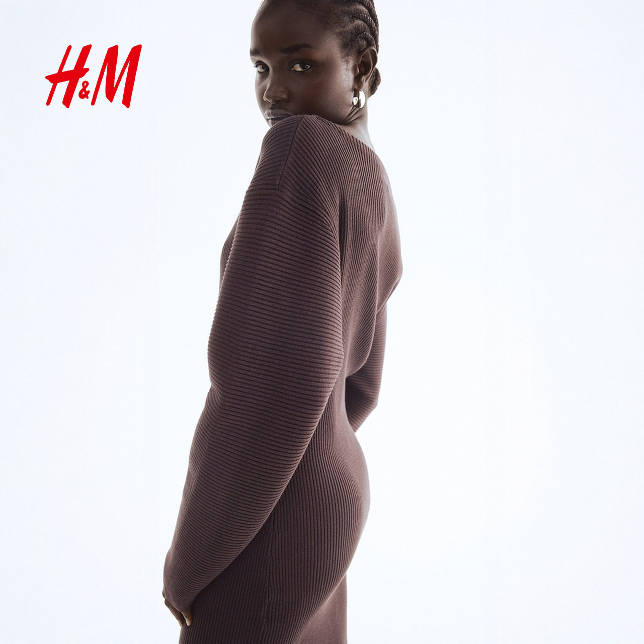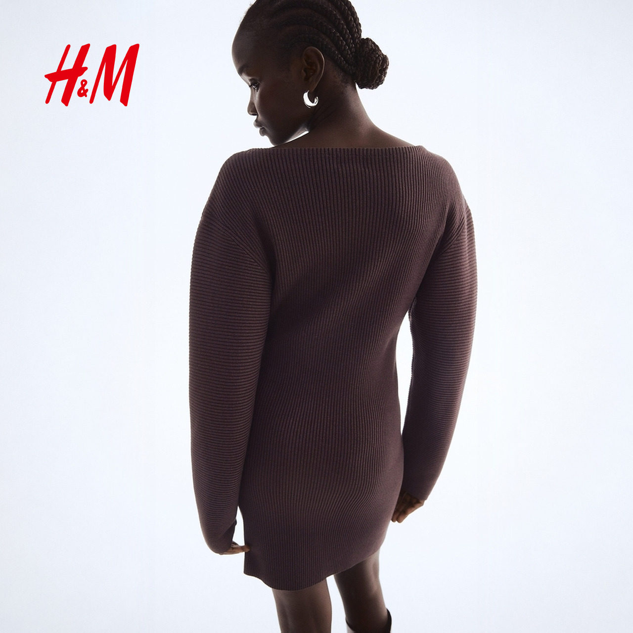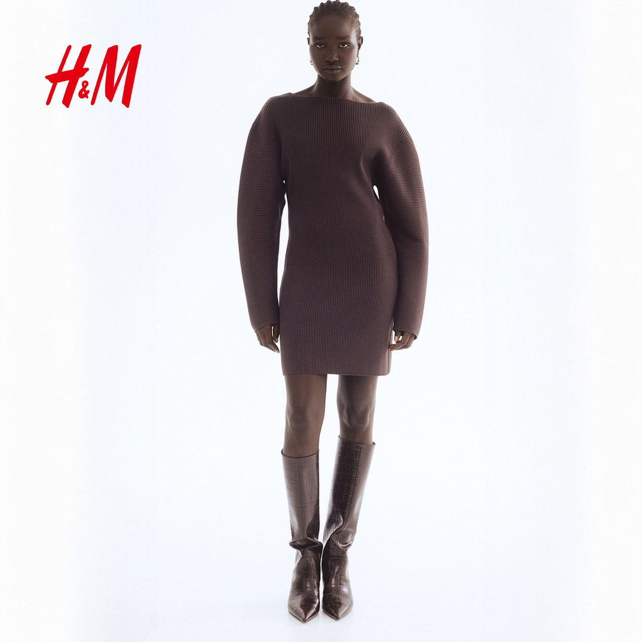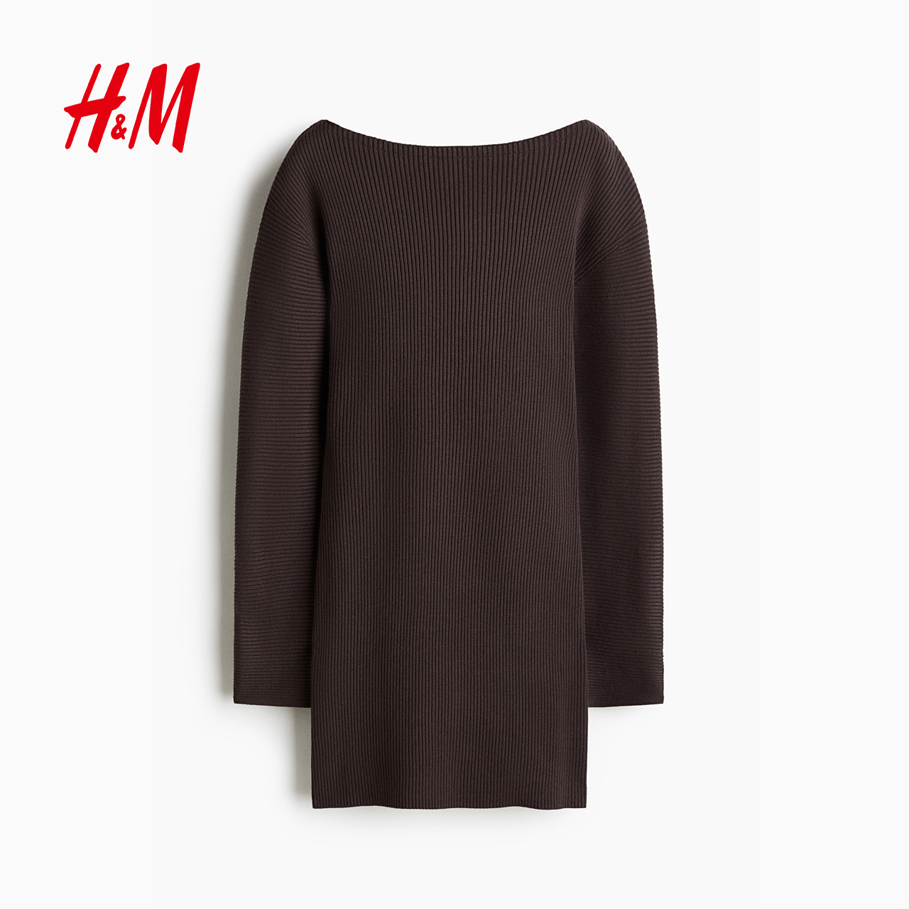 HM女装连衣裙2025冬季新款一字领背心裙罗纹针织连身裙1309945