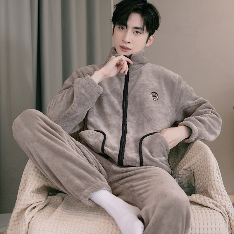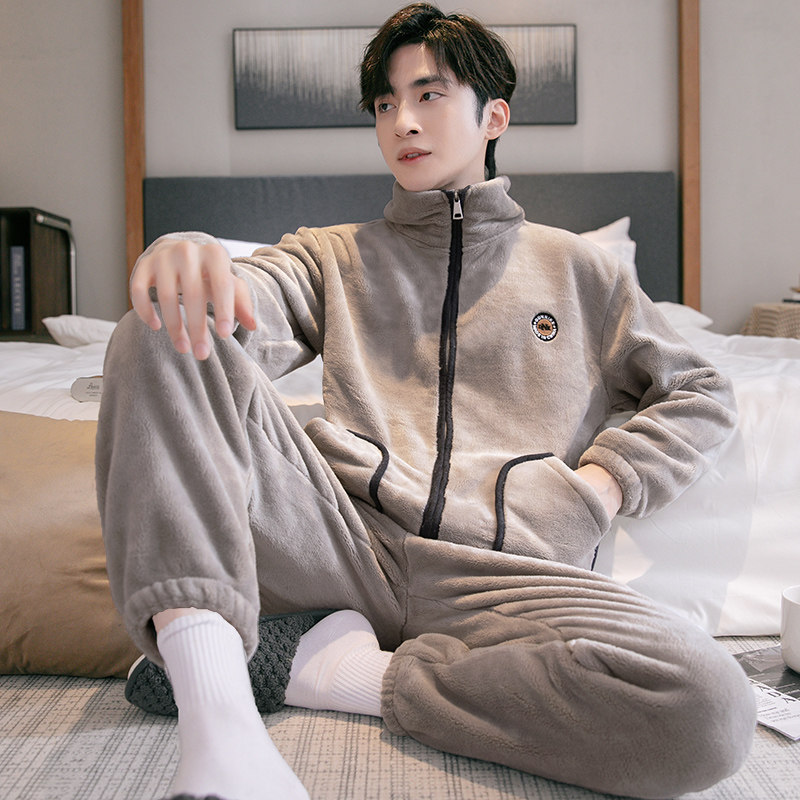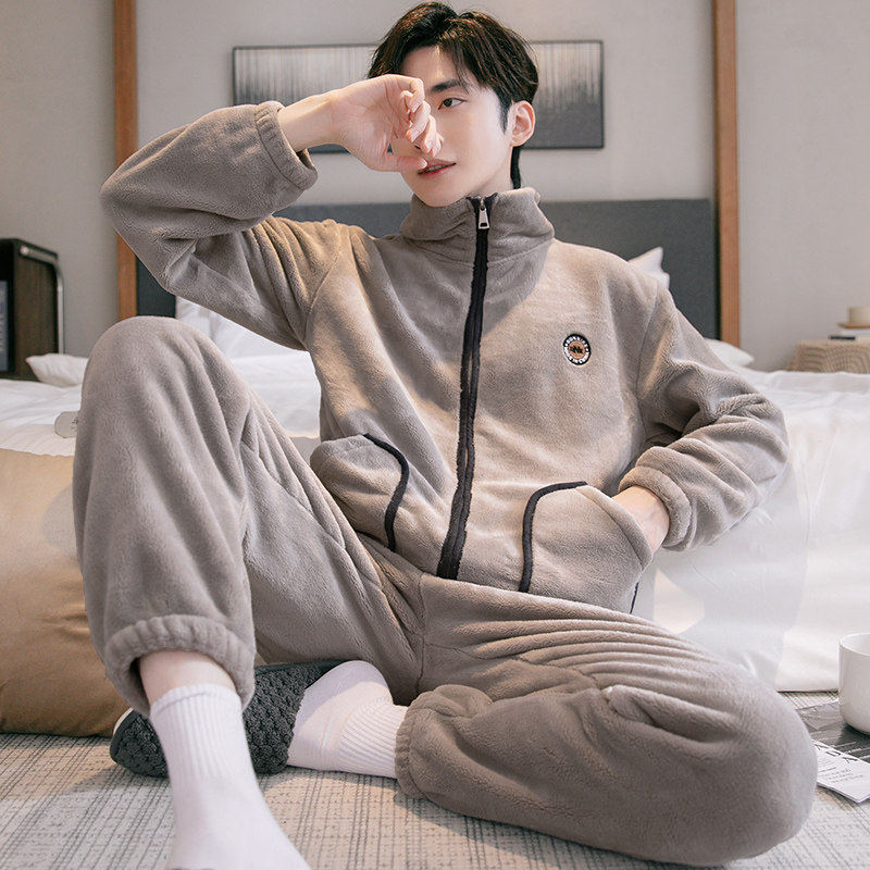 男士睡衣冬季珊瑚绒三层夹棉加厚加绒男款青少年2025年新款家居服