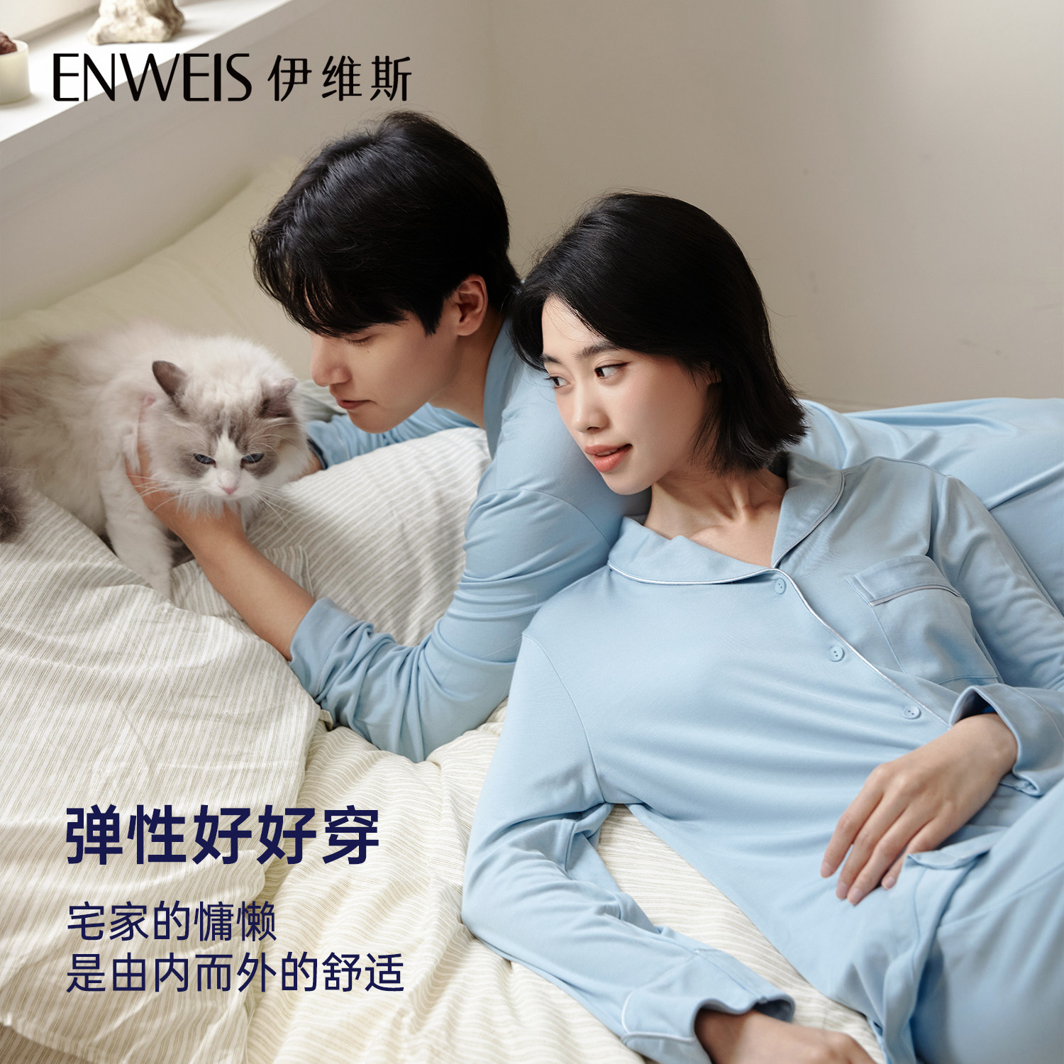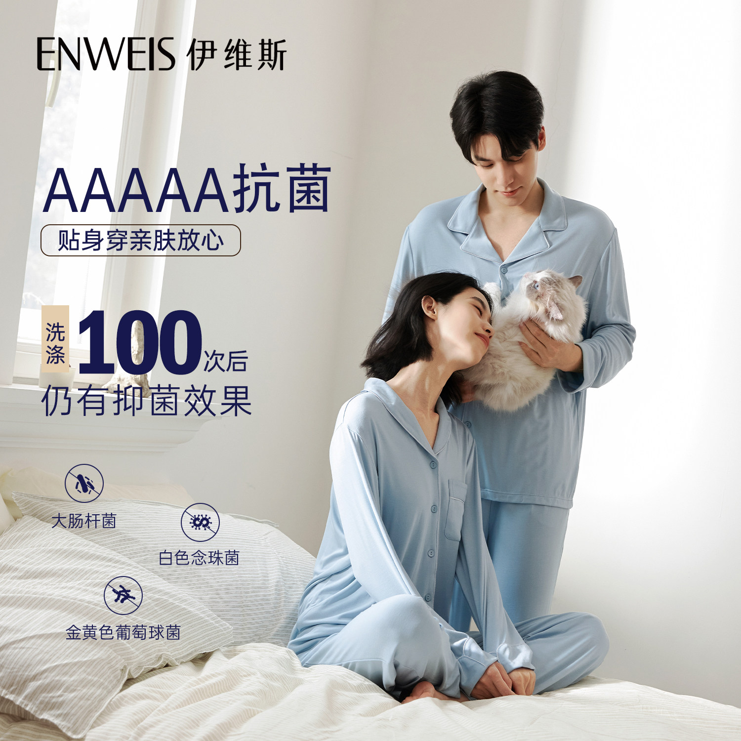 【晚安睡衣男款】 伊维斯防螨抑菌春秋情侣款超柔软家居服