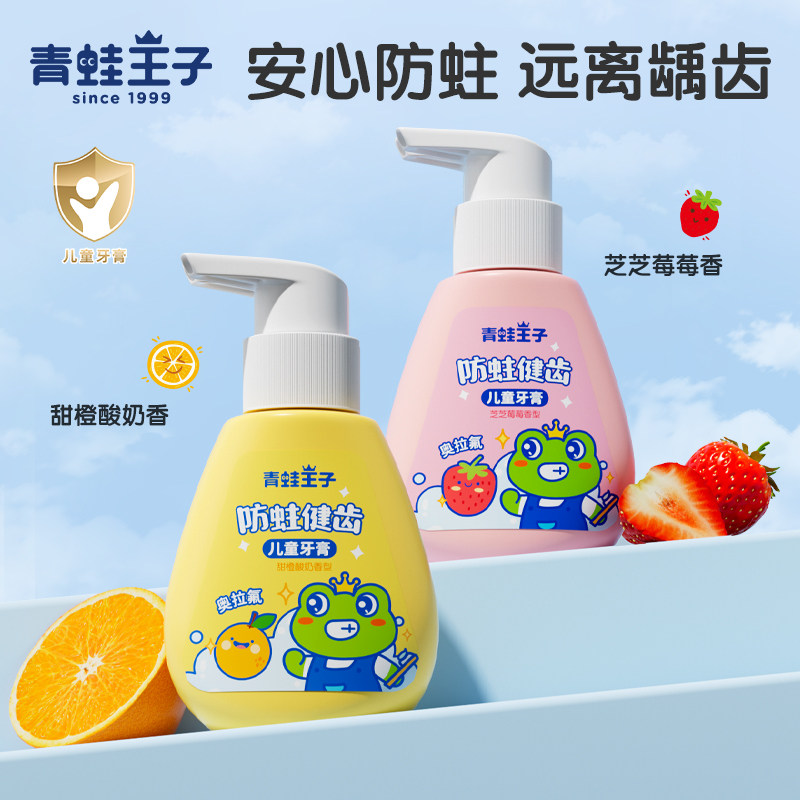 青蛙王子儿童按压牙膏宝宝2-12益生菌牙膏换牙期防蛀6岁以上含氟