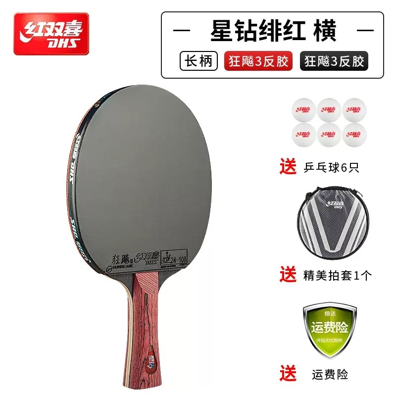 红双喜乒乓球拍星钻绯红双面狂飚3横拍直拍专业级五星六星成品拍
