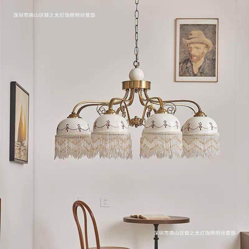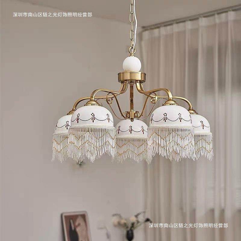 法式全铜复古宫廷卧室书房餐厅吊灯欧式美式中古vintage流苏吊灯