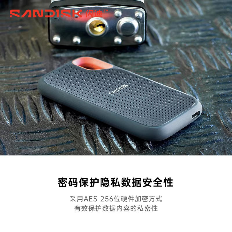 闪迪2tb移动固态硬盘 4t手机电脑外接ssd加密高速外置移动硬盘1tb