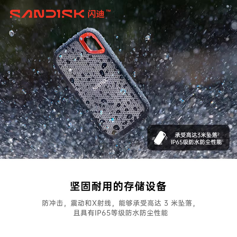 闪迪E61固态移动硬盘2t三防便携ssd外接1tb大容量手机电脑两用