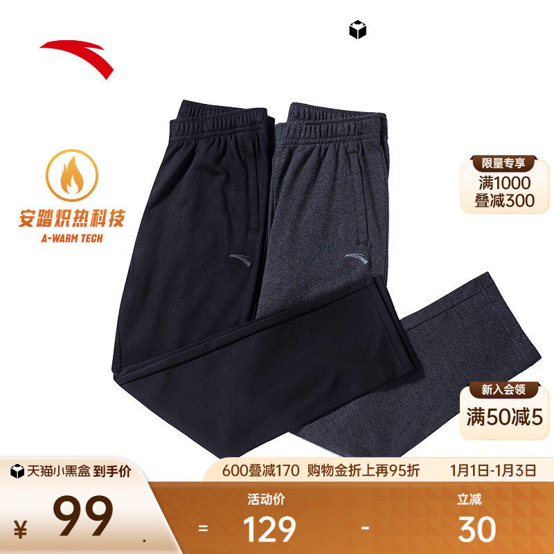 安踏运动裤男士冬季新款直筒裤休闲卫裤黑色跑步长裤针织加绒裤子