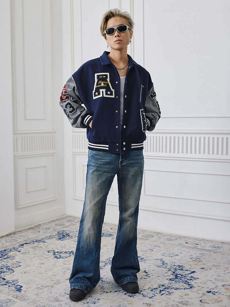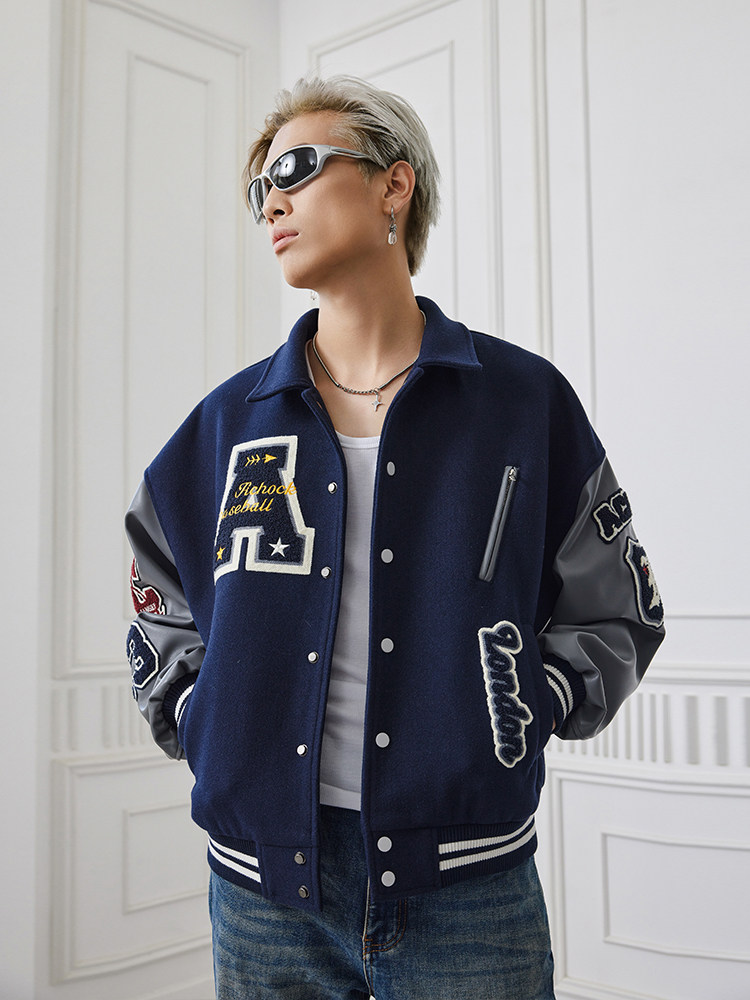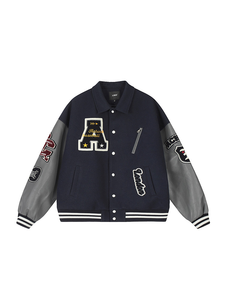 A chock美式cleanfit立领重磅刺绣棒球服潮牌宽松外套高级男夹克