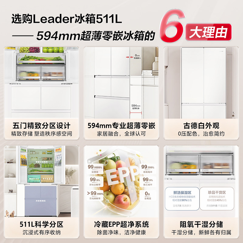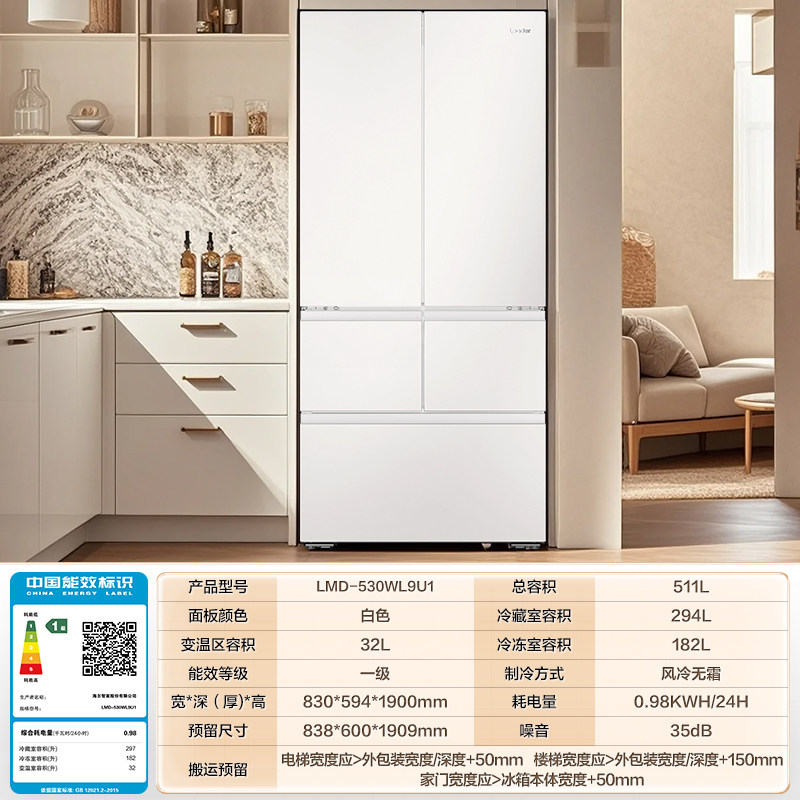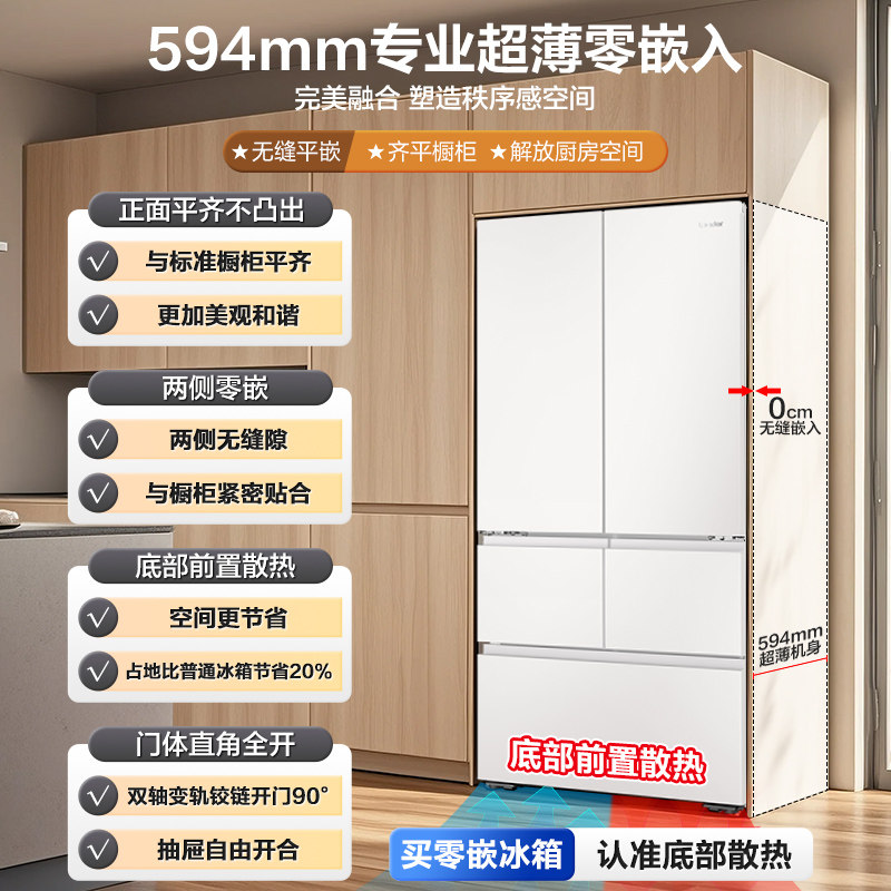 统帅511L冰箱法式多门594mm超薄机身零嵌一级风冷家用电冰箱530