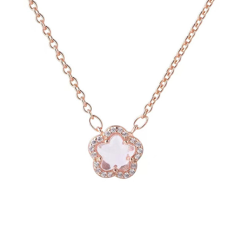 粉水晶樱花吊坠项链女2024新款小众颈链简约时尚锁骨链钛钢爱心