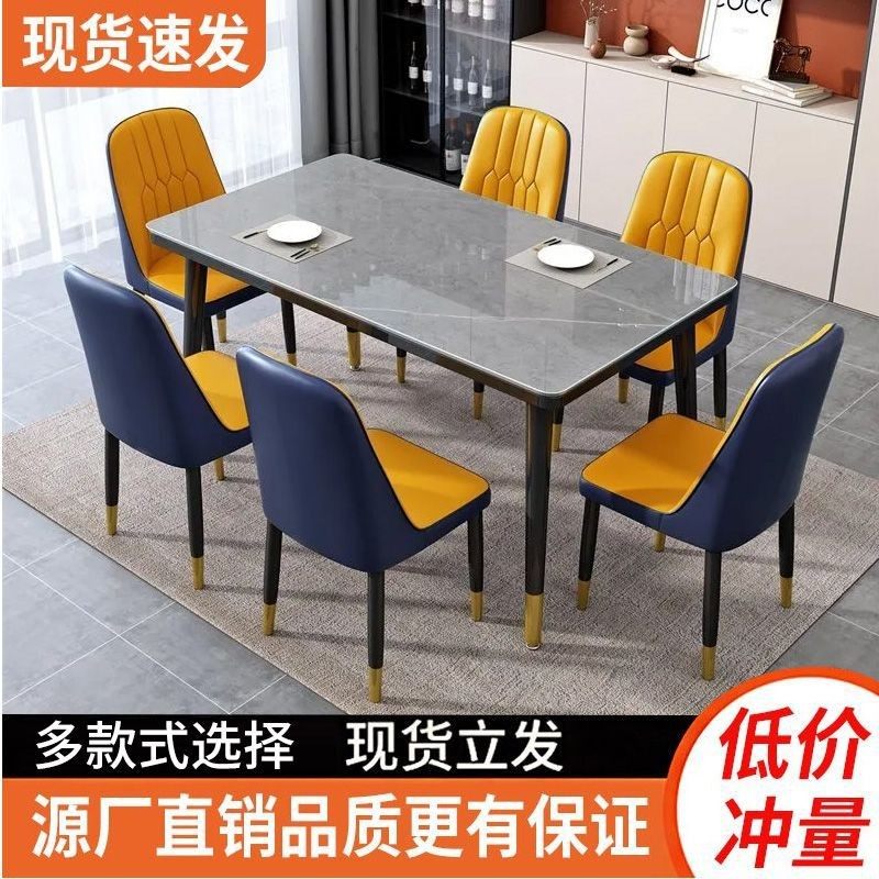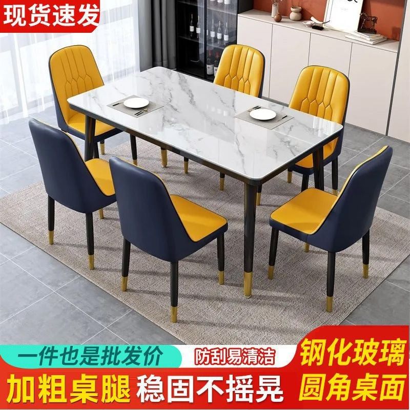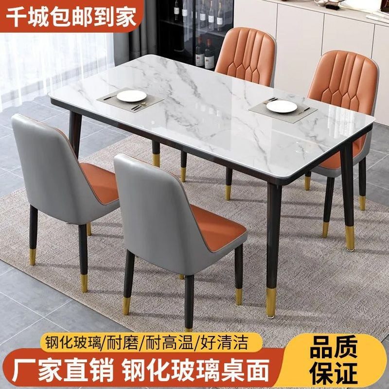 餐桌家用小户型现代简约岩板餐桌耐用长方形玻璃吃饭桌餐桌椅组合