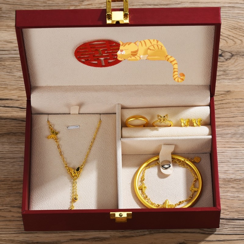 假三金首饰一套结婚仿真五金套装订婚摆台道具婚礼嫁妆假黄金手镯