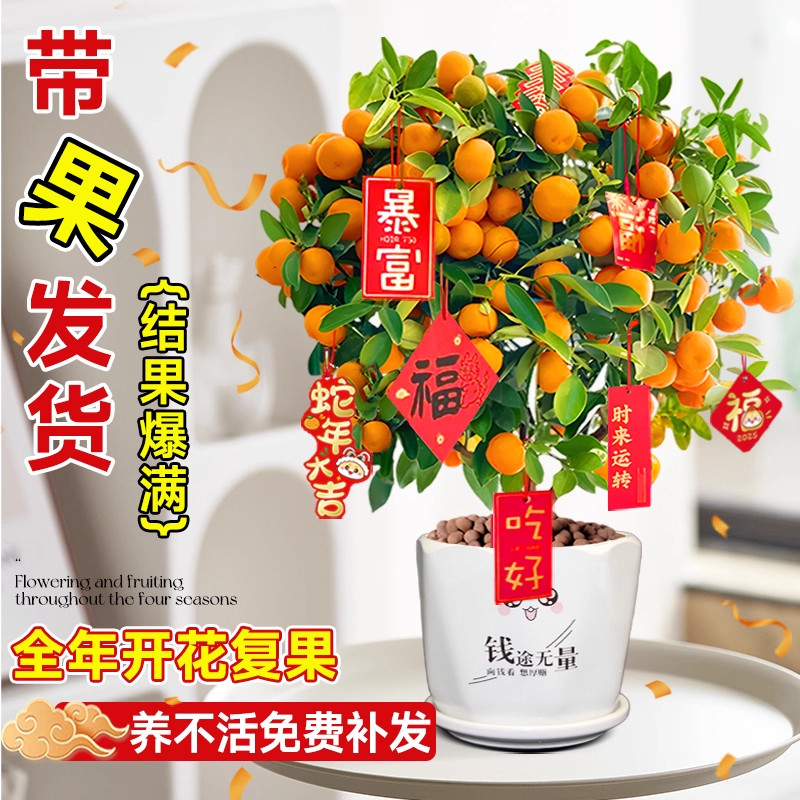 金桔树盆栽可食用带果脆皮四季橘子树苗客厅室内外花卉绿植物