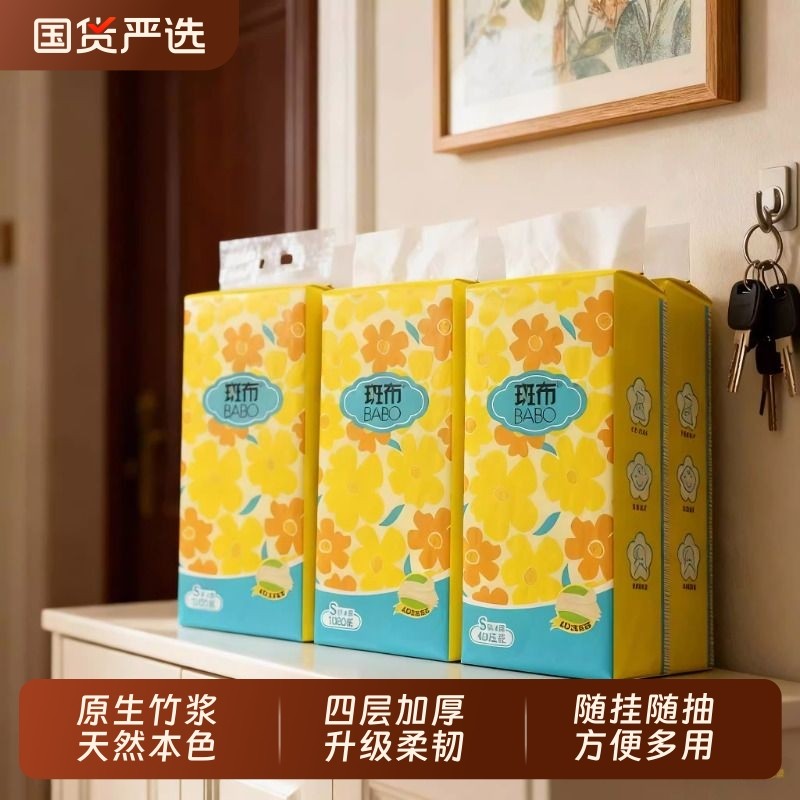 斑布抽纸悬挂式纸抽1080张6提家用加厚卫生纸270抽厕纸餐巾面巾纸
