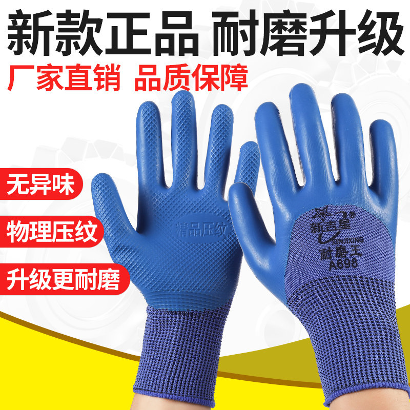 橡胶压纹手套劳保耐磨工作耐用防水工地干活劳动带胶皮王乳胶防护