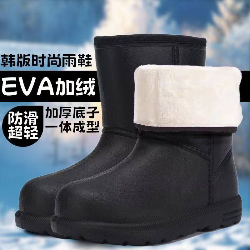加绒保暖雨鞋女款雪地靴冬季2025新款防水防滑厚底成人女士水棉鞋
